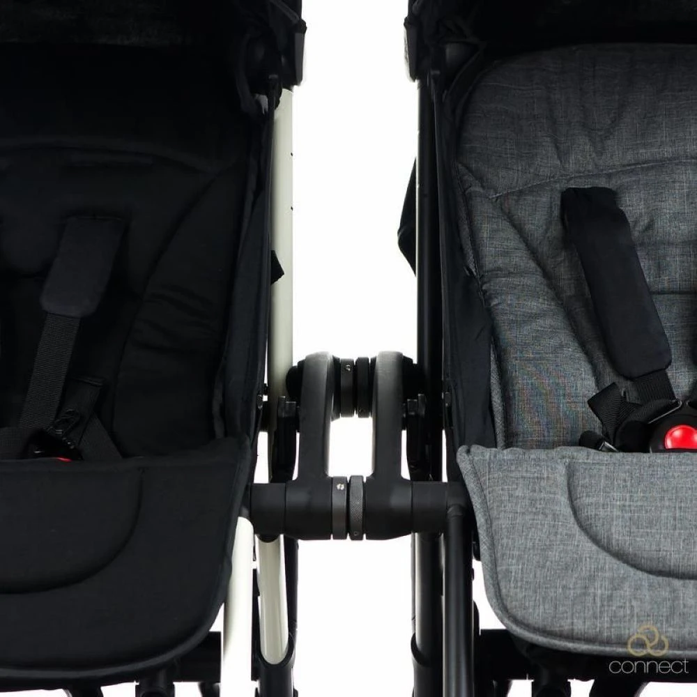 - Automatic magnetic lock connects multiple Connect strollers together with ease.