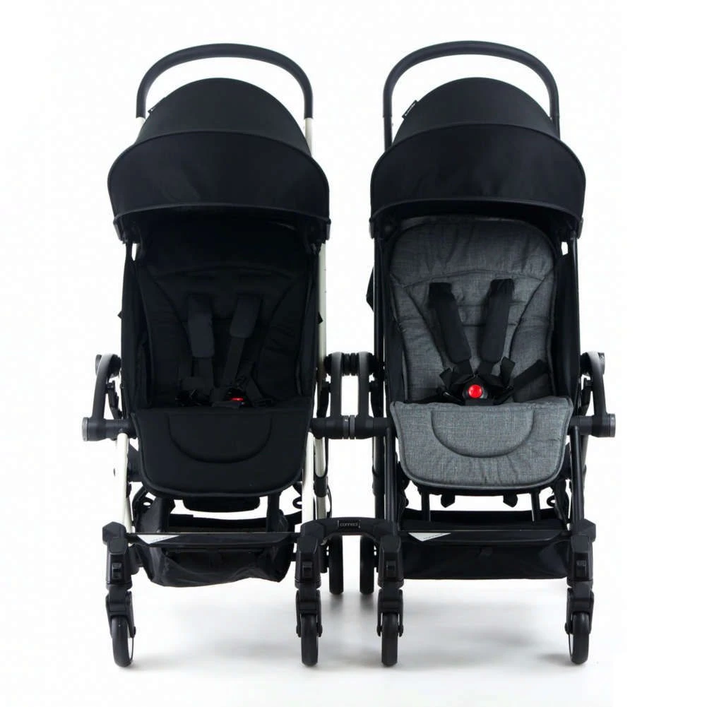 - Automatic magnetic lock connects multiple Connect strollers together with ease.
