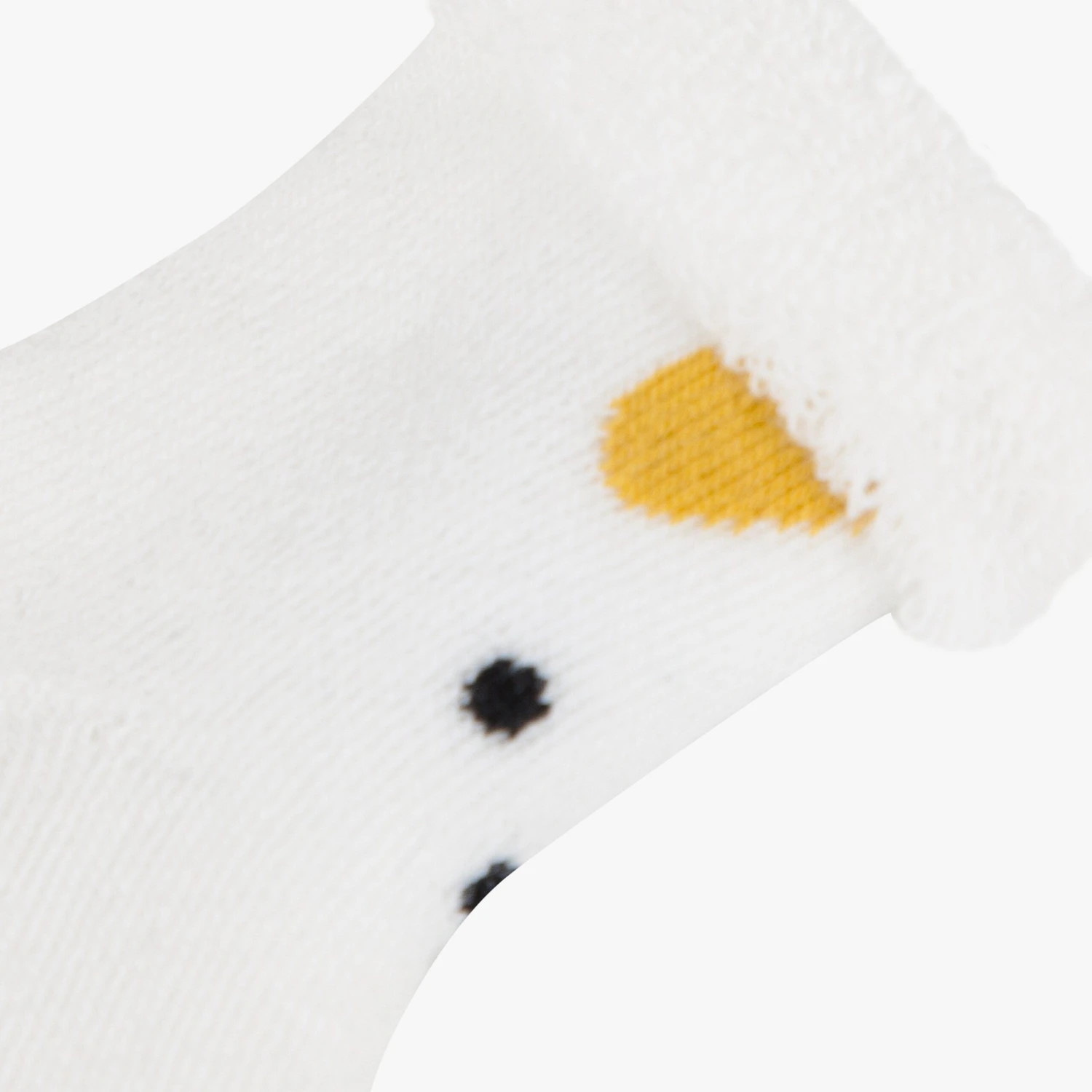 Fluffy baby socks with a funny dog face. Socks in soft and warm terry knit. Pairs with the Raining Cats & Dogs theme.