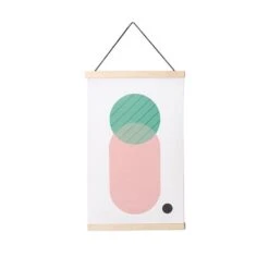 Canvas 15″ x 24.5″/35 x 62 cm wall hanging with 3/4″ wood top in Baltic birch + leather cord.