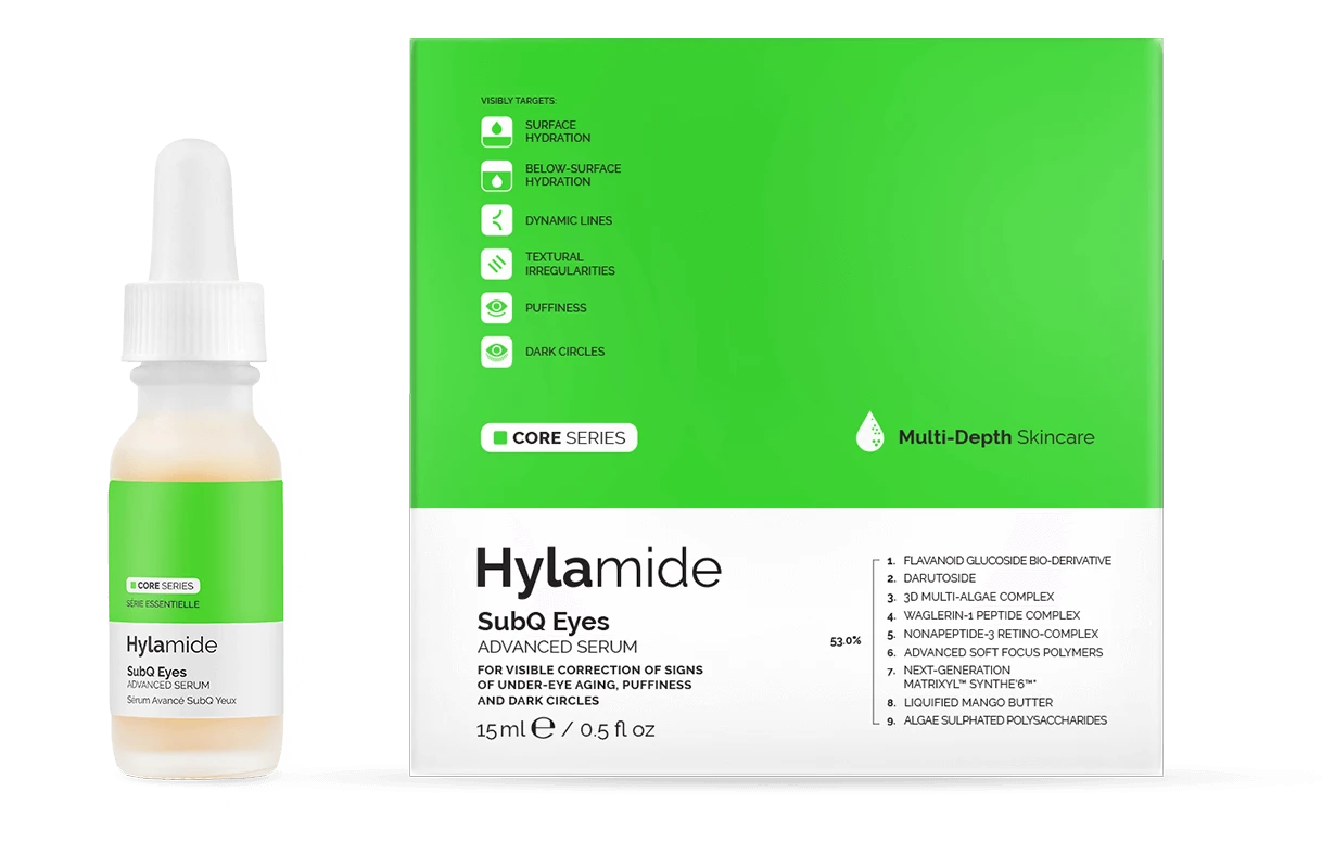 Apply in the eye contour AM and PM avoiding direct eye contact ideally after application of SubQ Anti-Age. Follow with specific Hylamide Boosters as needed.