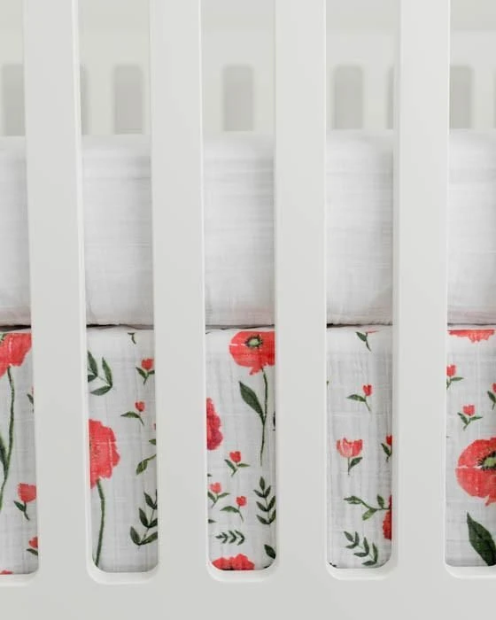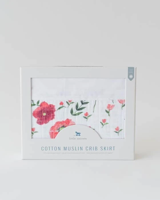 A muslin cotton crib skirt to complement your nursery’s look and feel.