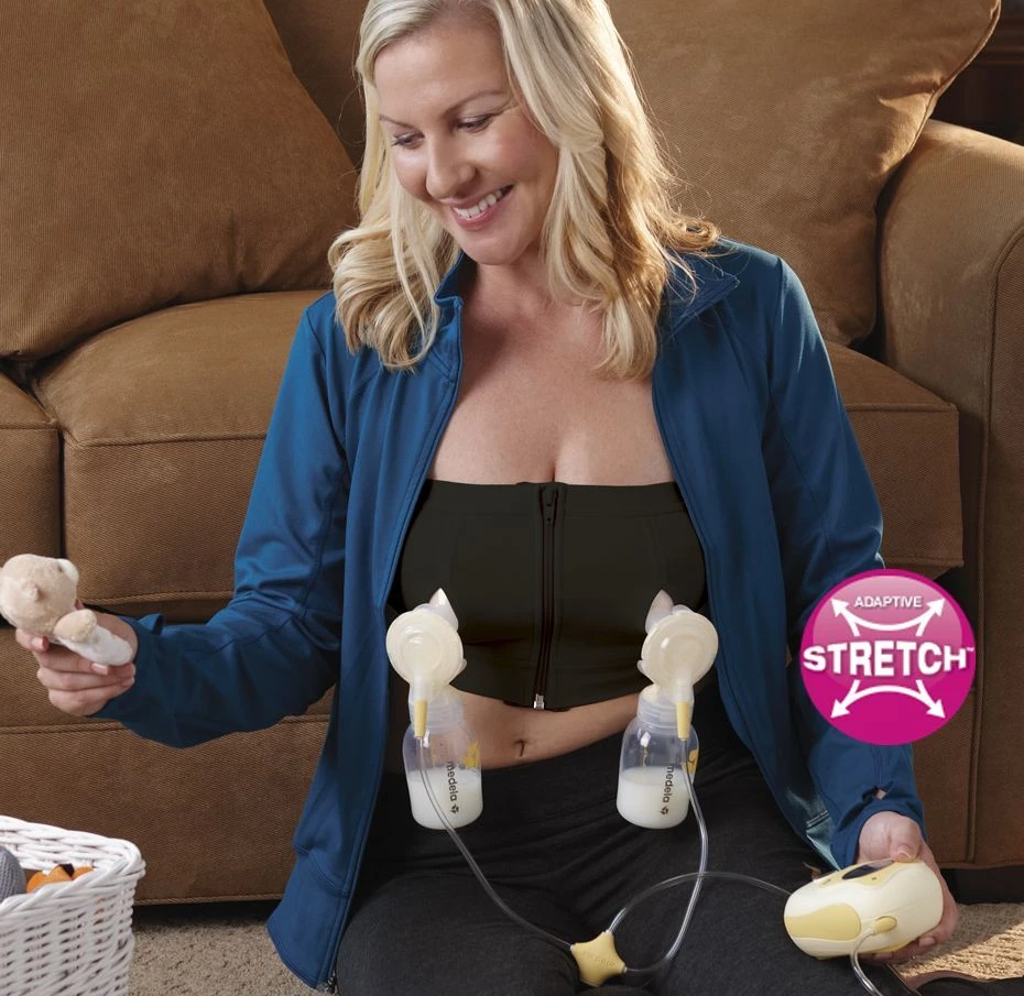 NEW and IMPROVED Easy Expression Hands-free Pumping Bustier – now featuring Adaptive Stretch™! Medela’s patented Adaptive Stretch technology allows the bustier to adapt to your body to provide exceptional fit and comfort throughout your pumping journey. Can be worn alone or over a nursing bra or camisole.