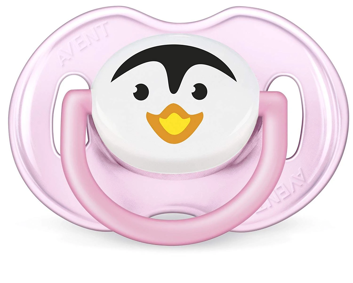 Ideal for babies up to six months old, Philips Avent Classic Pacifiers soothe your baby while supporting healthy oral development. This set of two pacifiers feature colorful animal designs and are made of odor-free, taste-free silicone. Ring handles make them easy to retrieve or remove, while snap-on caps keep the nipples hygienic after sterilization. These BPA-free pacifiers can be cleaned in the dishwasher or in a sterilizer.