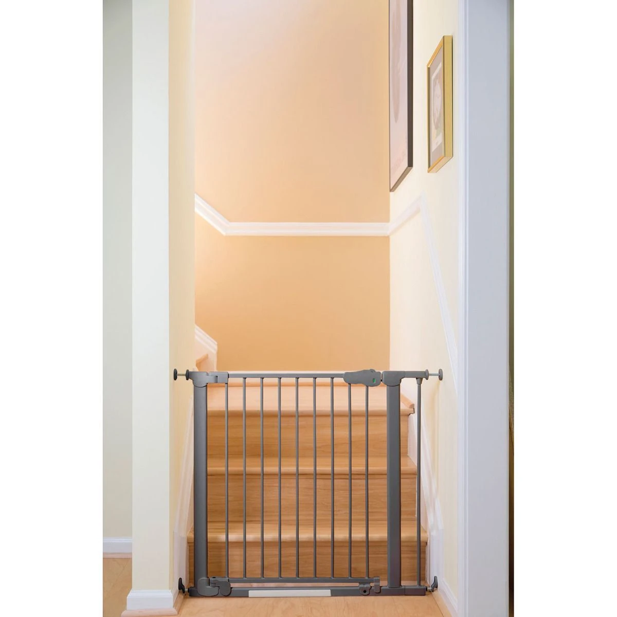 Keep your kids and your pets out of unwanted areas of your home with this Qdos Auto-Close pressure-mounted safety gate. The easy-to-install design features AccuInstall Indicators, a magnetic level, SecureHold adhesive wall cups, and Qdos QRF Spindles that allow easy and secure installation against quarter round mouldings.