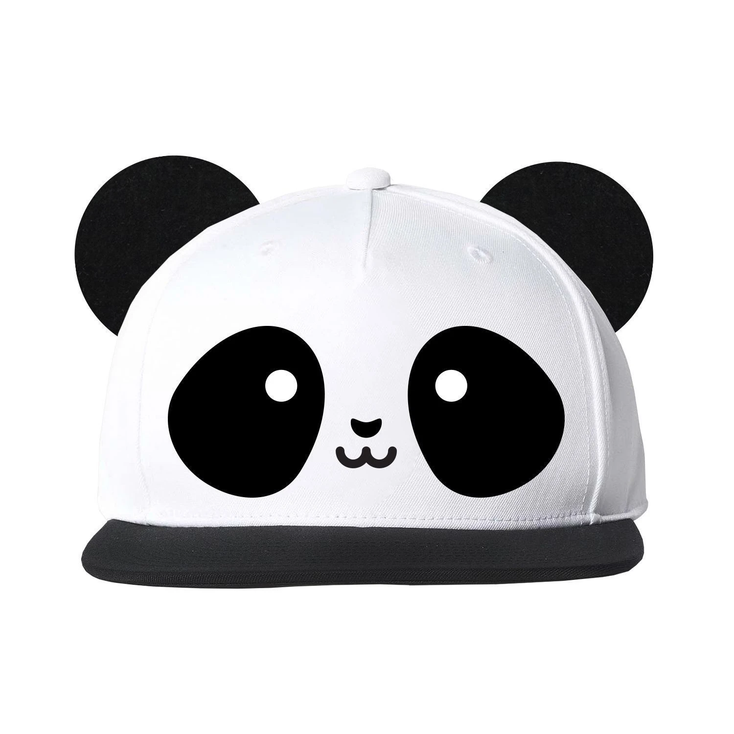Our Adorable Kawaii Panda screen printed in black on a super fly flat brim snapback cap with ears.